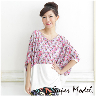 【名模衣櫃中大尺碼】圖樣撞色寬鬆棉質上衣(幾何紫)商品網址: http://www.momoshop.com.tw/goods/GoodsDetail.jsp?i_code=2162251&memid...