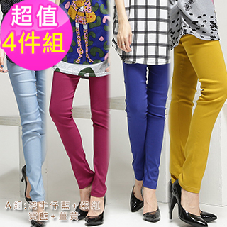 【名模衣櫃中大尺碼】夾-完美秋冬色極致顯瘦鉛筆褲4件組(共4組可選擇M-XXL)