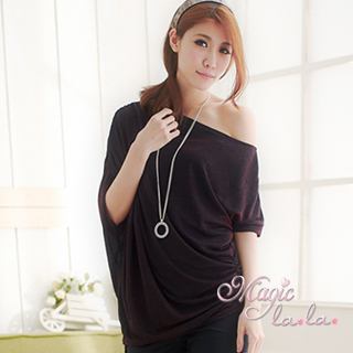 【Magic la.la.】華麗聚焦 綴金蔥抓折露肩上衣(共二色)