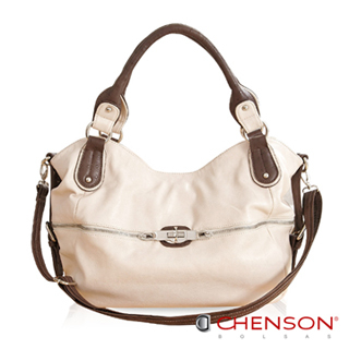 【CHENSON】大膽宣告.超炫耀雙拉鍊釦斜肩包.附背帶/纖細白(CG65617-E)