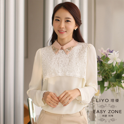 LIYO理優 正韓雪紡上衣蕾絲拼接甜美寶石雪紡襯衫上衣 3W5009 (共2色) S-XL