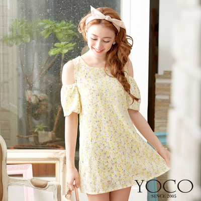 東京著衣-YOCO 小碎花蕾絲挖肩上衣(共二色)
