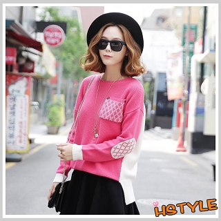 【創翊韓都】毛衣 圓領撞色拼接長袖毛衣DF4039(現貨+預購)
