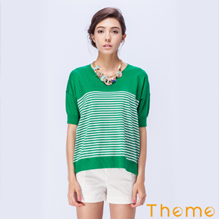 【Theme】配色橫條紋短袖針織衫(碧綠)