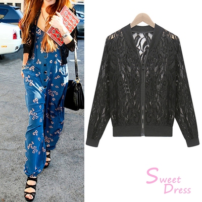 微透蕾絲拉鍊外套(共二色)Sweet Dress商品網址: