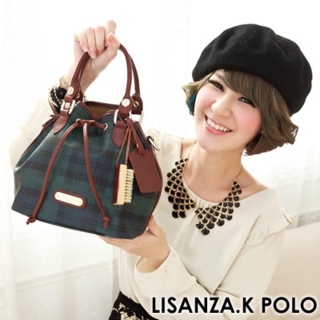 【LISANZA.K POLO】皇家牛皮-蘇格蘭綠格紋多way水桶包
