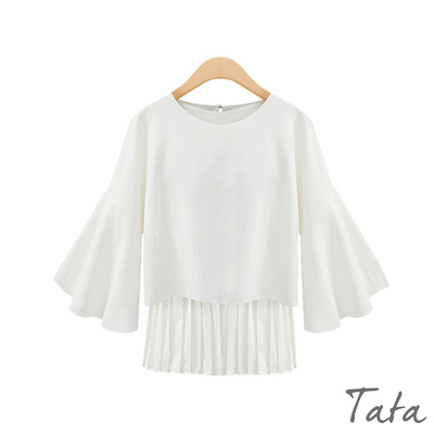 下擺褶皺荷葉邊袖兩件套上衣 TATA商品網址: