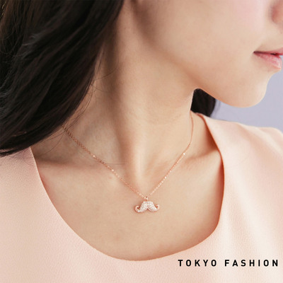 東京著衣 翹鬍子水鑽玫瑰金短項鍊(共一色)