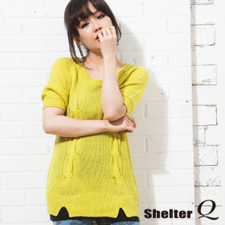【Shelter Q】率性麻花交叉編織針織衫(黃綠)