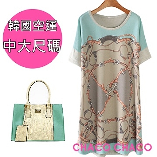 【現貨CHACO PLUS】韓製抽象金屬鎖鏈印花配色短袖長版衫1918(2色L-XL)商品網址: http://www.momoshop.com.tw/goods/GoodsDetail.jsp?i_...