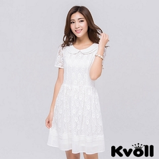 【KVOLL大尺碼】白色復古氣質蕾絲雪紡連衣裙