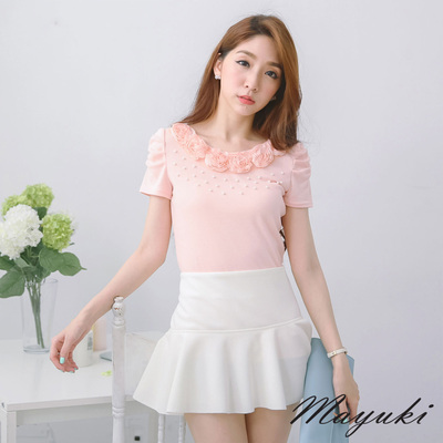 東京著衣-MAYUKI 立體花朵綴珠彈性棉T-S.M(共四色)