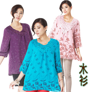 1.三款衣服都採用100?酯纖維,材質輕飄好穿脫;衣服以蕾絲加寶石為主要設計,加上衣身印花的豐富性,視覺上繽紛且精緻。