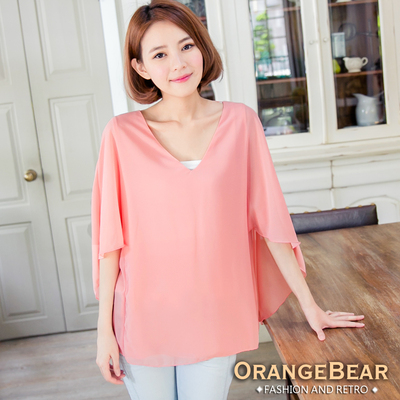 OB嚴選-V領蓋肩層次雪紡上衣.共二色