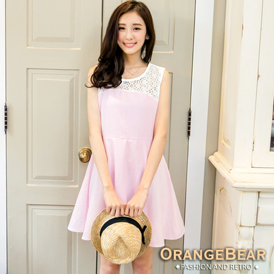 OB嚴選-鏤空蕾絲拼接條紋洋裝‧共二色