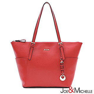 【JOE&MICHELLE】真皮十字紋珍妮芺口袋包(蜜粉橘)