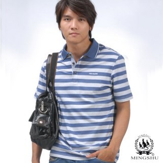 【MINGSHU】吸汗透氣短POLO衫 - 海軍藍條紋3265G(備大尺碼)
