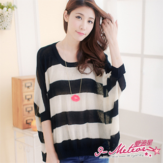【I-meteor中大尺碼】顯瘦寬鬆橫條紋針織上衣PA1346(輕柔米黑)