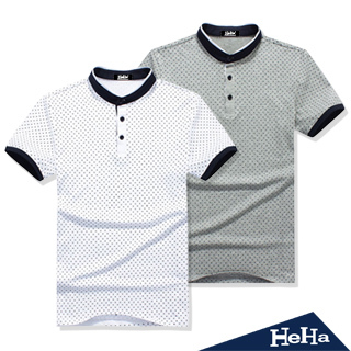 POLO衫 修身點點立領短袖上衣 二色-HeHa