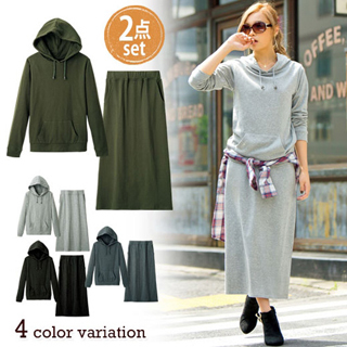 【現貨 日本portcros】二件式連帽抽繩長洋裝(黑色-L)