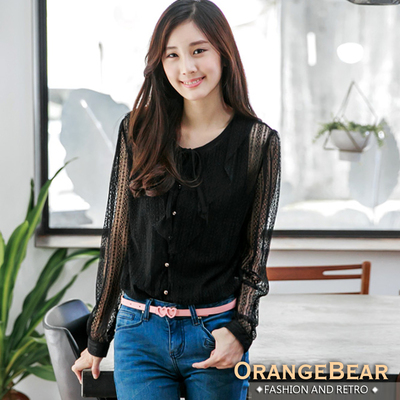 - OB嚴選-蕾絲荷葉領綁帶上衣