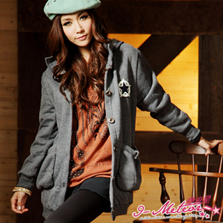 【I-meteor中大尺碼】星光徽章厚棉連帽休閒外套(率真灰)