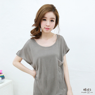 獨特鉚釘亮鑽口袋點出重點拼接透膚雪紡女人曲線若隱若現