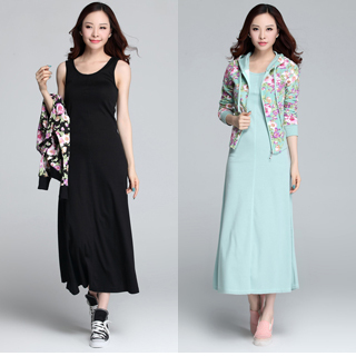 【菟絲花】韓版長裙修身長袖打底背心連衣裙兩件套(大尺碼)