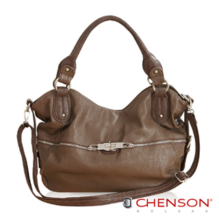 【CHENSON】大膽宣告.超炫耀雙拉鍊釦斜肩包.附背帶/愜意咖(CG65617-B)