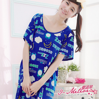 【I-meteor中大尺碼】美式滿版插畫風連身居家休閒T恤(潮流藍)