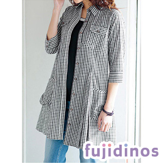 當作外套也方便的襯衫長版上衣。腰部開始傘狀設計,穿上後立刻修飾身型的剪裁!