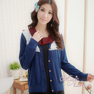 【Magic la.la.】蕾絲花網木釦小外套(質感藍)S144