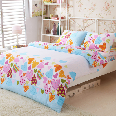 Aileen-心心童趣-柔絲絨雙人加大四件式舖棉兩用被床包組