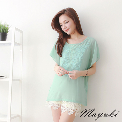 東京著衣-MAYUKI 圖騰刺繡荷葉袖雪紡罩衫(共二色)