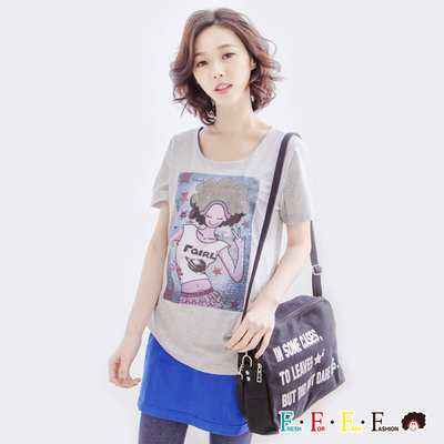 FFFF 棉質雙色拼接印花上衣 (XL碼 共三色)
