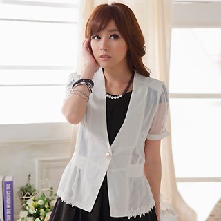 直到網友Michael介紹我上網買了一件【菟絲花】韓版OL百搭V領單扣網紗姐妹衫短外套開衫短袖大碼小外套(大尺碼),想不到品質和剪裁真的和夜市OR路邊攤差很多!!
