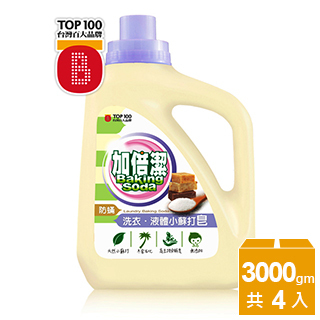 【加倍潔】洗衣液體小蘇打皂-尤加利防蹣3000gm(4瓶-箱)