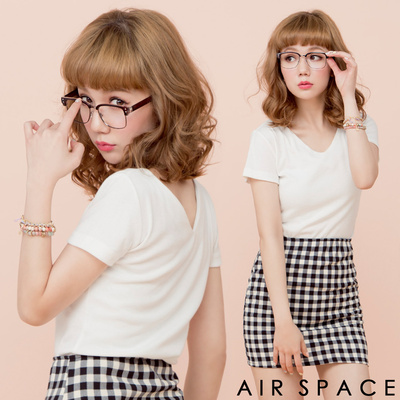 AIR SPACE 前後V領素面棉質短袖上衣(簡約白)