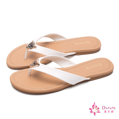 達芙妮DAPHNE 俐落韓風金屬鑲飾夾腳涼鞋-百搭白