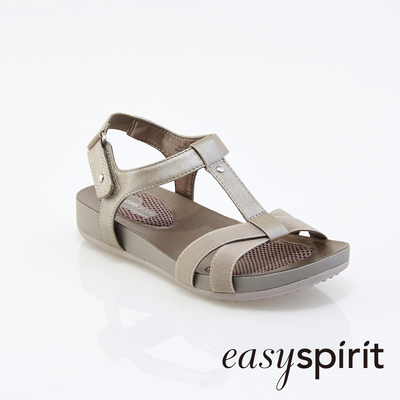 Easy Spirit 摩登線條舒適有型 條帶交錯魔鬼氈設計涼鞋~奪眼銀