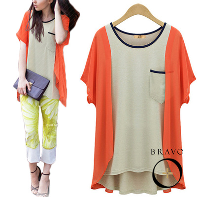 莫代爾棉雪紡撞色拼接上衣 Bravo