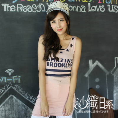 AMAZING星星膠印前燒洞長版背心(粉)-沙織日系