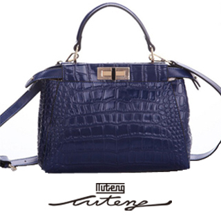 【TU-TENG】鱷紋牛皮轉釦肩提包(品味深藍)