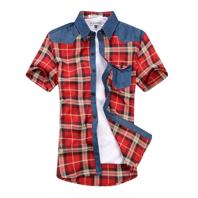 韓式作風 三角反摺口袋造型格紋短袖襯衫-共三色商品網址: