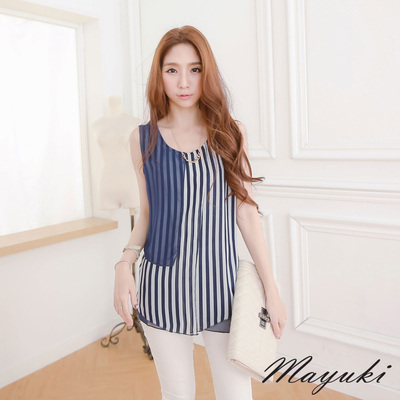 東京著衣-MAYUKI 直條紋拼接雪紡背心(共三色)