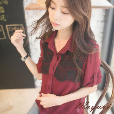 東京著衣【MAYUKI】綴蕾絲雙領長袖雪紡襯衫(共三色)