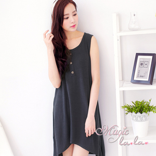 【魔法拉拉】飾木釦不規則背心長洋裝A342(魅力灰)商品網址: http://www.momoshop.com.tw/goods/GoodsDetail.jsp?i_code=2676619&memi...