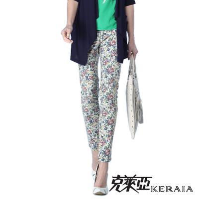 克萊亞KERAIA 提臀花布直筒牛仔長褲