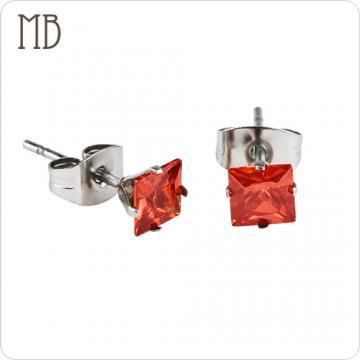 【MB流行鋼飾】美鑽系列「幻彩(方)(亮紅色)(5M)」白鋼耳環
