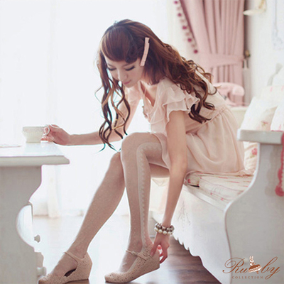 圓點直條蕾絲絲襪褲襪-露比午茶
